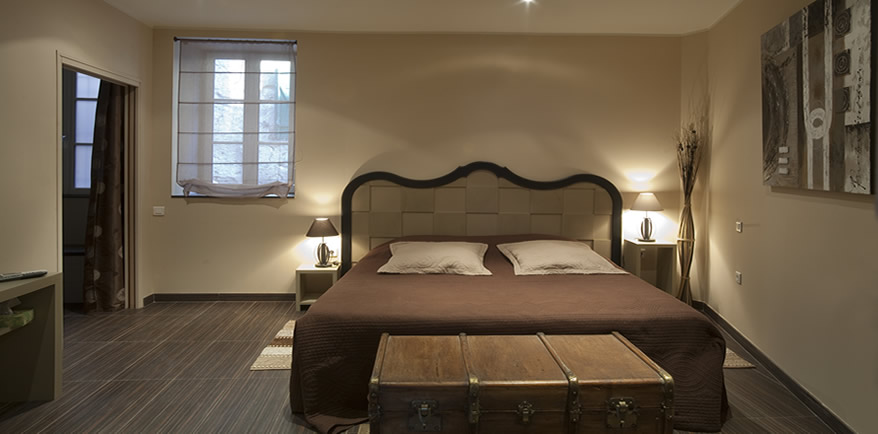 La chambre « Mikado » est idéale pour un couple, elle est spacieuse 26 m² est propose un maximum de confort. Cette chambre reprend un thème « Zen ».